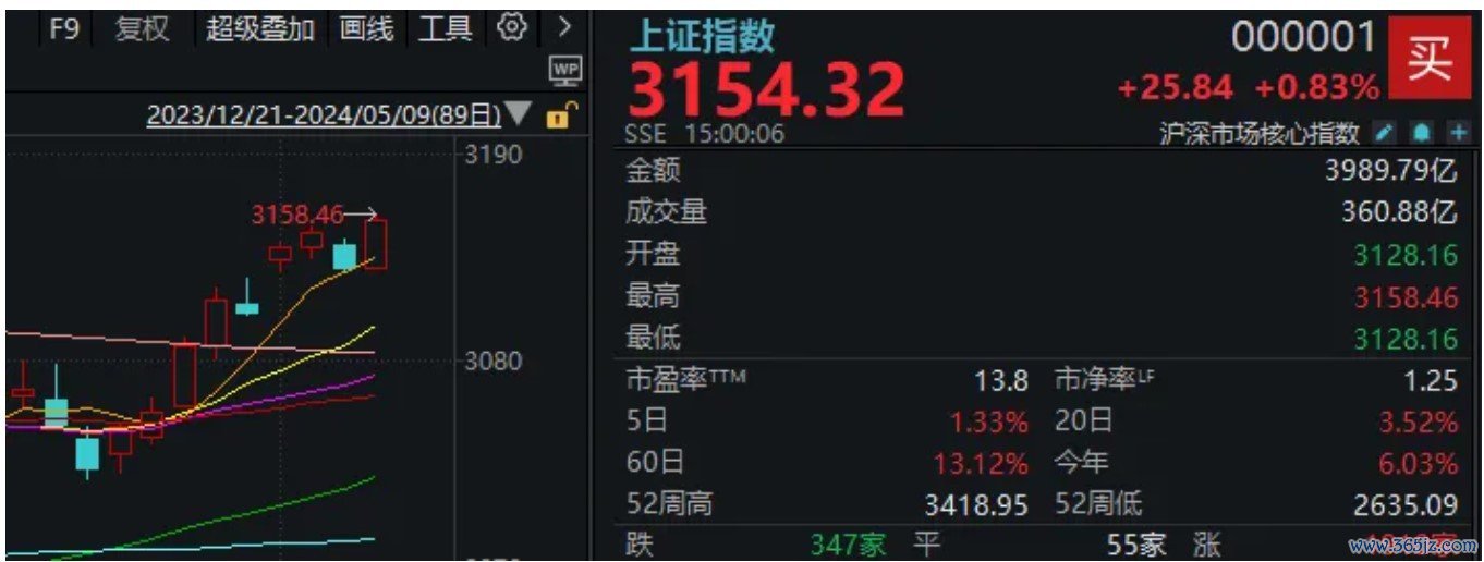 5月9日,市场全天震荡反弹,创业板指领涨,沪指、深成指均再创年内新高。截至收盘,沪指涨0.83%,深成指涨1.55%,创业板指涨1.87%。