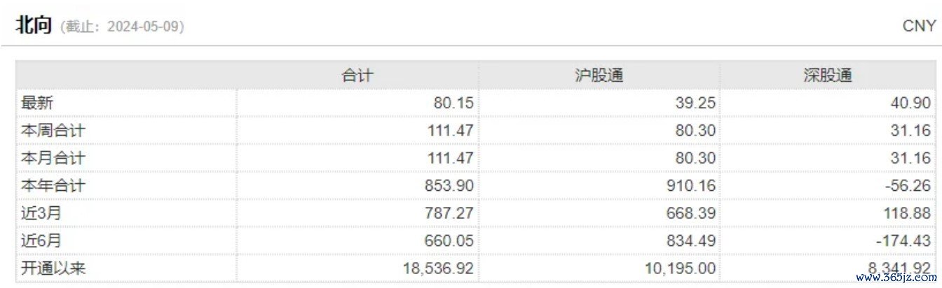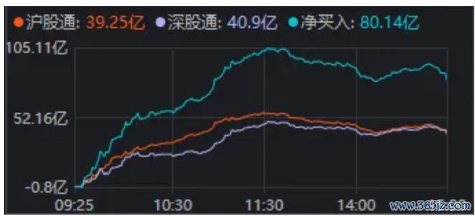 北向资金全天大幅净买入80.14亿元,此前连续2日减仓;其中沪股通净买入39.25亿元,深股通净买入40.9亿元。