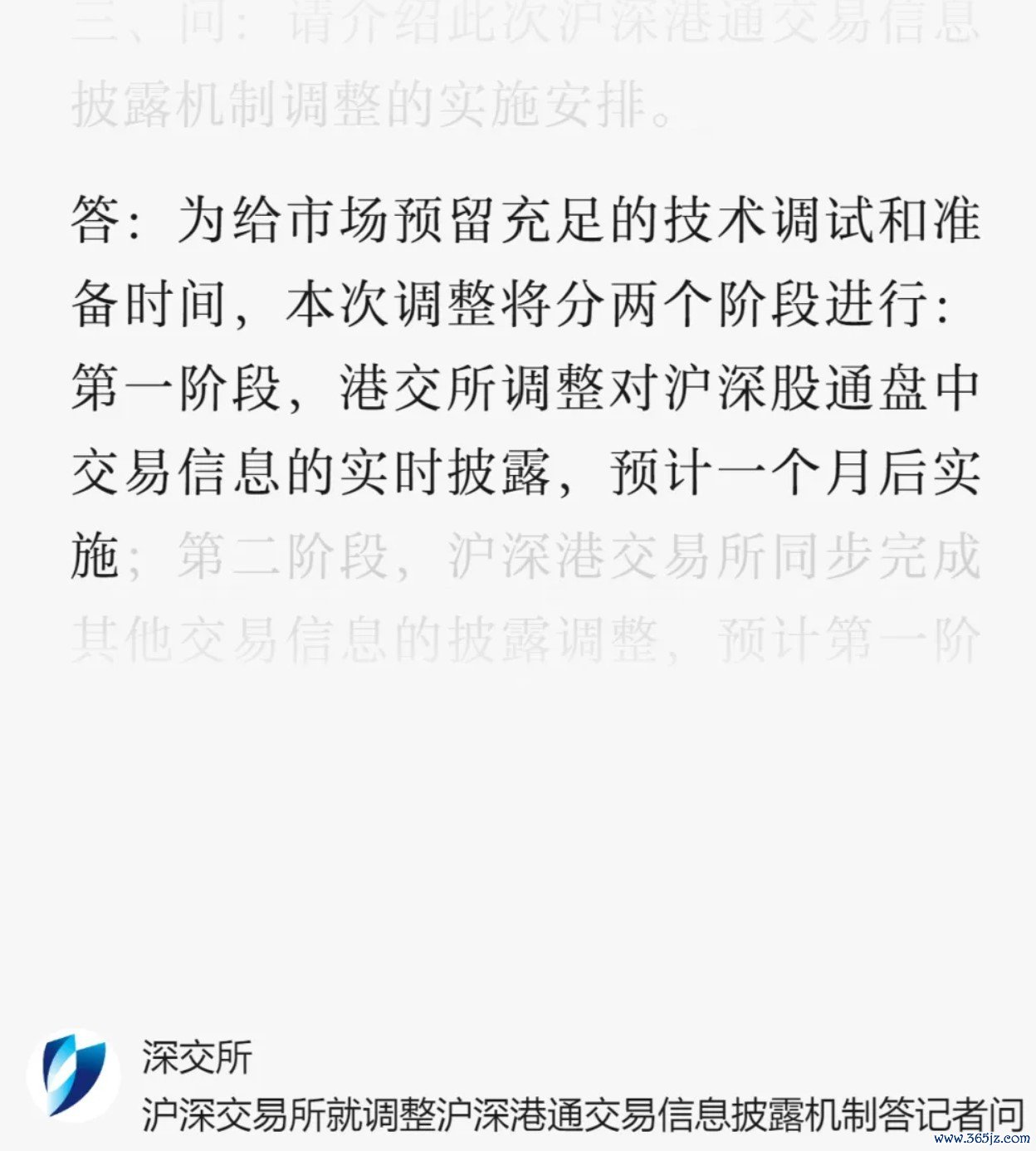 4月12日,沪深港交易所宣布,同步调整沪深港通交易信息披露机制。