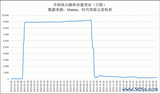 据东方财富choice金融终端,在中核钛白解禁期前后,中核钛白的融券余量均发生异动,根据融券余量数据,自2023年2月14日,即解禁期开始前一个月,融券余量从几十万股的数量级一跃至千万级,自2023年2月17日至2023年9月13日,融券余量均维持在9000万股左右,而解禁日9月20日之后,融券余量发生断崖式下降,回归至百万股的数量级。