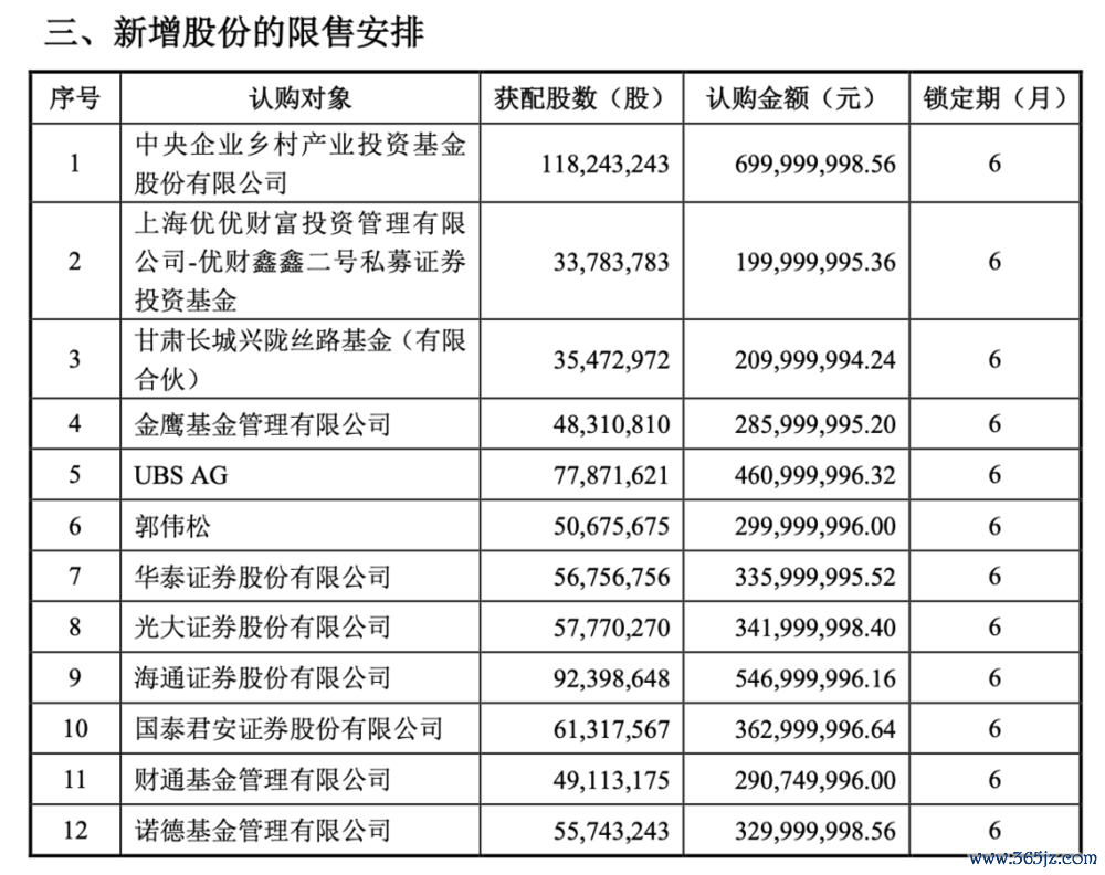 在16家认购对象中,除了此次涉事的海通证券以外(认购了9239.86万股,认购金额达到近5.47亿元),其他大型证券公司包括中金公司、瑞银(UBS)、国泰君安证券、光大证券、华泰证券也均参与认购。